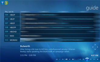 quickSelectSurfing through lengthy channel listings, pictures, video clips or audio files to select the content you want is easy with the combination of the screenPoint and quickSelect technology. No more laborious up/down/left/right clicking to select a program, just point the remote off to the side of the screen to zip through listings!